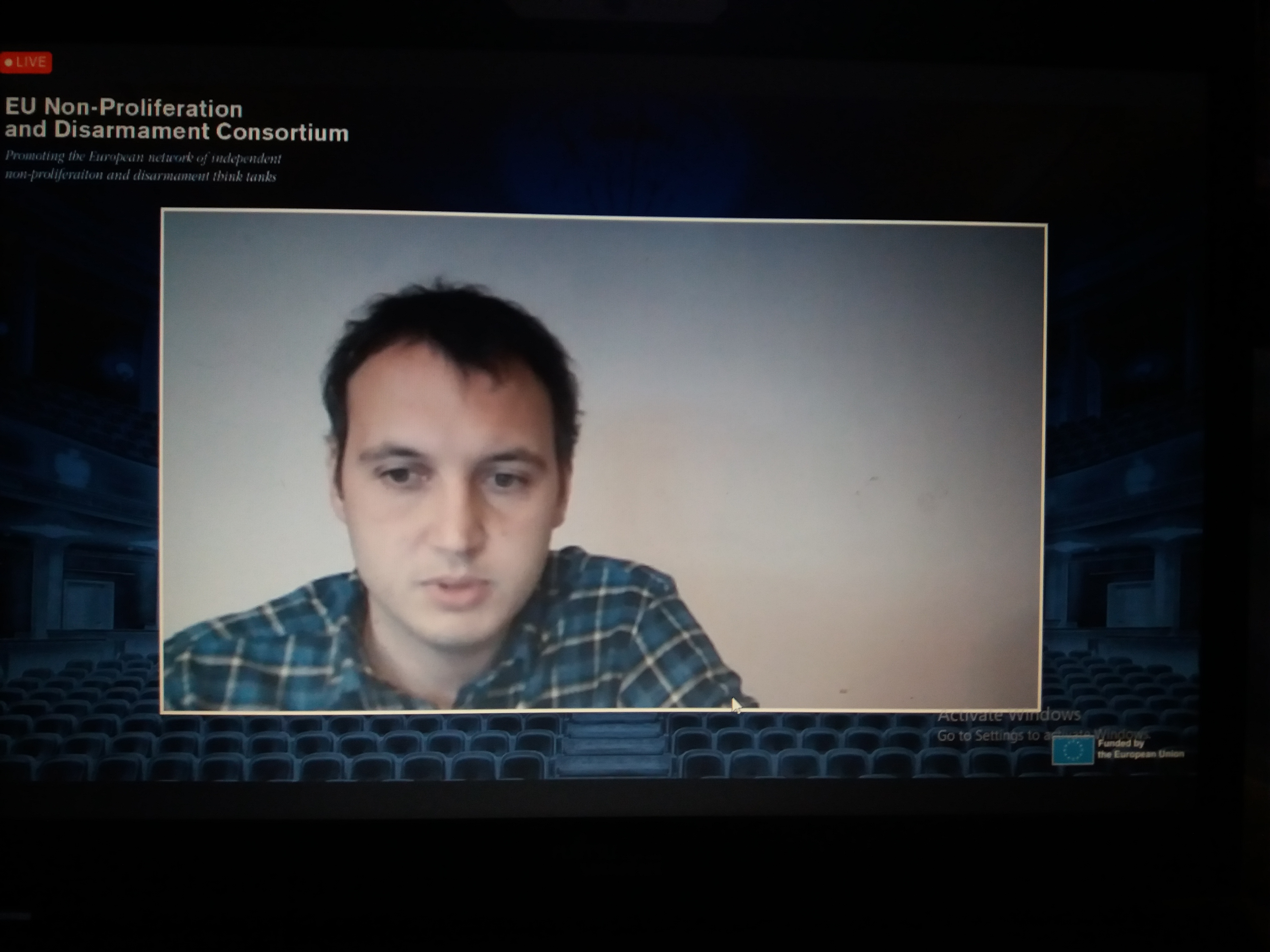 Andrej Stefanović, doktorant Fakulteta političkih nauka govorio je na temu glavnih pitanja i izazova predstojeće pregledne konferencije NPT. U prvom delu izlaganja, on je upoznao pristne sa značajem i odredbama NPT-ja, kao i sa karakterom i svrhom preglednih konferencija koje se održavaju svake pete godine. U drugom delu izlaganja Andrej je detaljnije upoznao prisutne sa funkcionisanjem pripremnih konferencija NPT i radom komiteta između preglednih konferencija. On je istakao da je manje od polovine preglednih konferencija rezultovalo dogovorom i završnim dokumentima, a posebno istakao onu iz 1995. godine kada je NPT produžen neograničeno i usvojena Rezolucija o uspostavljanju Zone slobodne od oružja za masovno uništenje na Bliskom Istoku. Istakao je da je ovo pitanje i jedno od ključnih pitanja razdora na preglednim konferencijama. On je naveo da postoji ponovna mogućnost odlaganja desete pregledne konferencije NPT budući da se neke države zalažu za konferenciju sa prisustvom umesto virtuelnu. On je naglasio i da će naglasak na ovoj preglednoj konferenciji biti na nuklearnom razoružanju, posebno u svetlu krize sporazuma o kontroli naoružanja, produžetka Novog START-a i stupanja na snagu TPNW. Još neke od tačaka razmatranja biće, po Andrejevoj oceni, i smanjivane fizionog materijala, ublažavanje nuklearnog rizika u svetlu nove konfrontacije velikih sila i potvrđivanje principa da nuklearni rat ne sme da se vodi i da se ne može dobiti, politika „no-first use“ i zona slobodne od oružja za masovno uništenje na Bliskom Istoku, iako je ovo pitanje u značajnoj meri izmešteno iz razmatranja na preglednim konferencijama NPT..