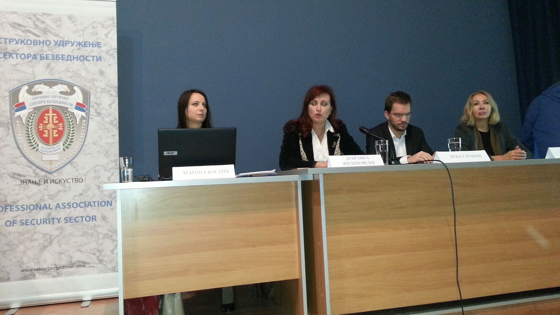 Skup su u ime dve organizacije pozdravili predsednik SUSB Dejan Milutinović i Dekan FDB prof.dr Nenad Djordjević. U svojstvu izlagača, medjunarodni okvir demokratske kontrole sektora bezbednosti, predstavili su gospodin Vladimir Bilandzić, predstavnik Organizacije za evropsku bezbednost i saradnju (OEBS) i generalni sekretar SUSB, ujedno i moderator skupa, Marina Kostić. Viđenje demokratske kontrole iz ugla delova sektora bezbednosti predstavili su prof. dr Stevo Ivetić, iz Ministartsva unutrašnjih poslova R. Srpske i dr Mila Jegeš, stručnjak za korporativnu bezbednost i predstavnik Centra za razvoj i primenu nauke, tehnologije i informatike iz Novog Sada. Funkcionisanje demokratske kontrole sektora bezbednosti iz ugla „kontrolora“ predstavili su narodna poslanica i članica Odbora za odbranu i unutrašnje poslove Narodne skupštine R. Srbije Dubravka Filipovski, predstavnik Kancelarije Zaštitnika građana Luka Glušac i predstavnica medija, novinar i autor emisije „Istina o…“, Lidija Manić, Kopernikus TV.